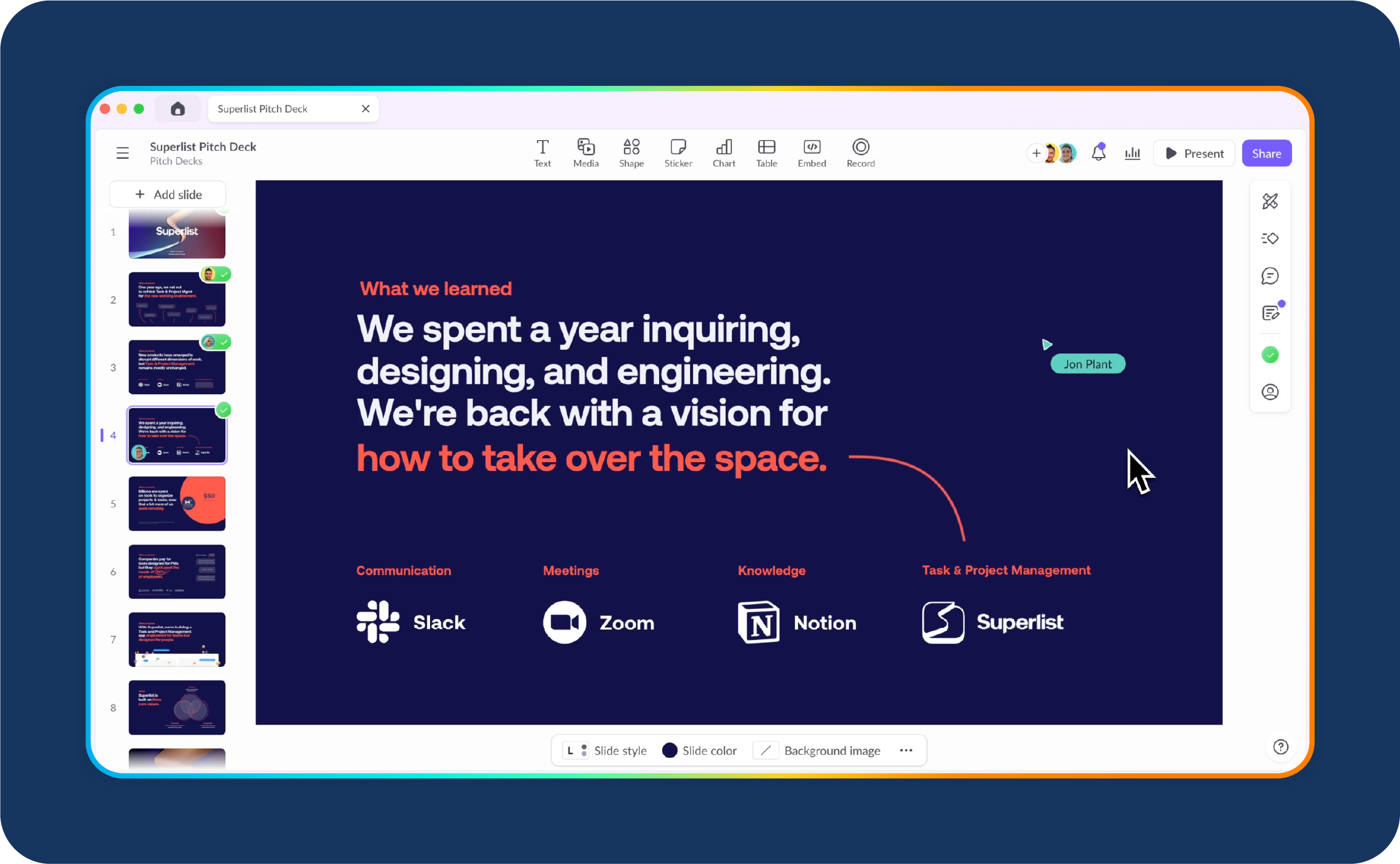Collaboration is also simple. You can get real-time comments from your team, work together on the same deck, and move quickly without version issues.